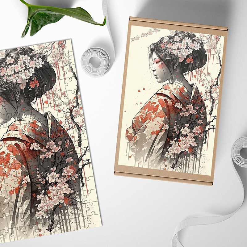 Dřevěné puzzle Japonská dívka se sakurami 1