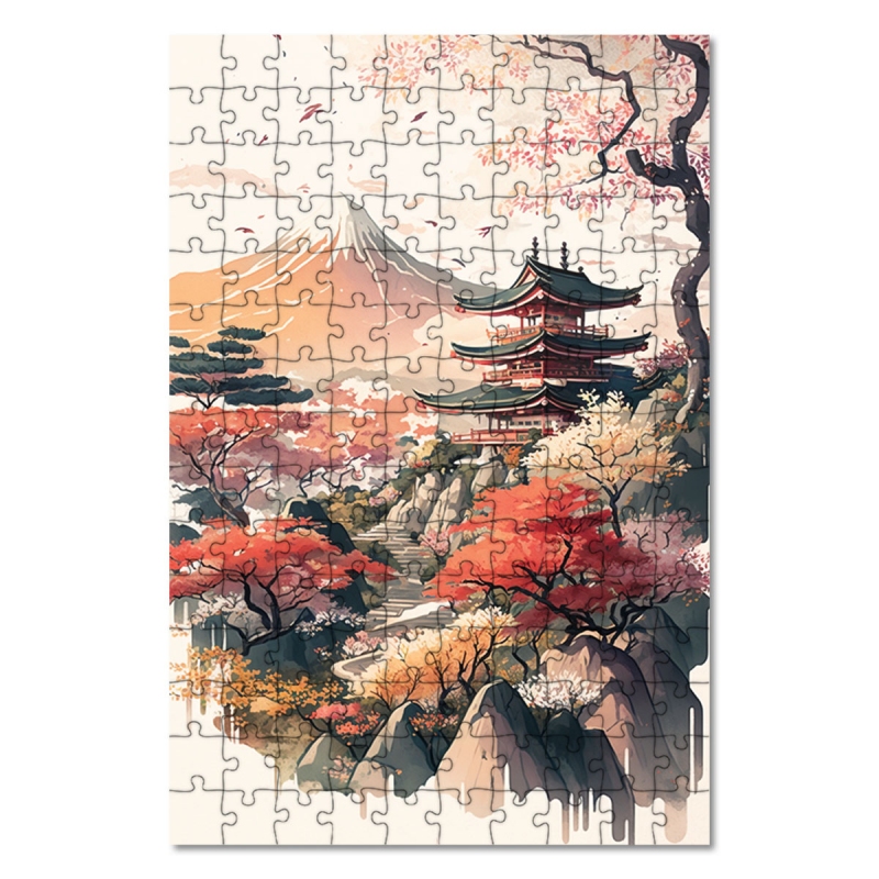 Dřevěné puzzle Japonský chrám před Fudži