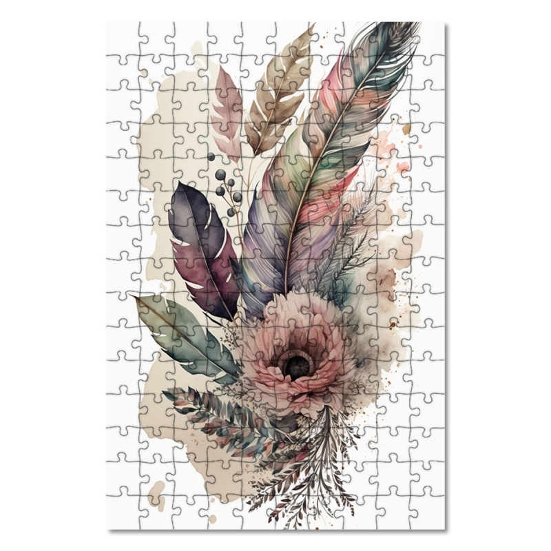 Dřevěné puzzle Koláž květin a peří 1
