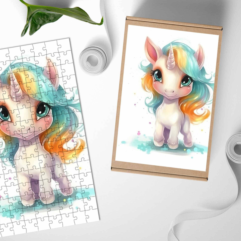 Dřevěné puzzle Kreslený Jednorožec