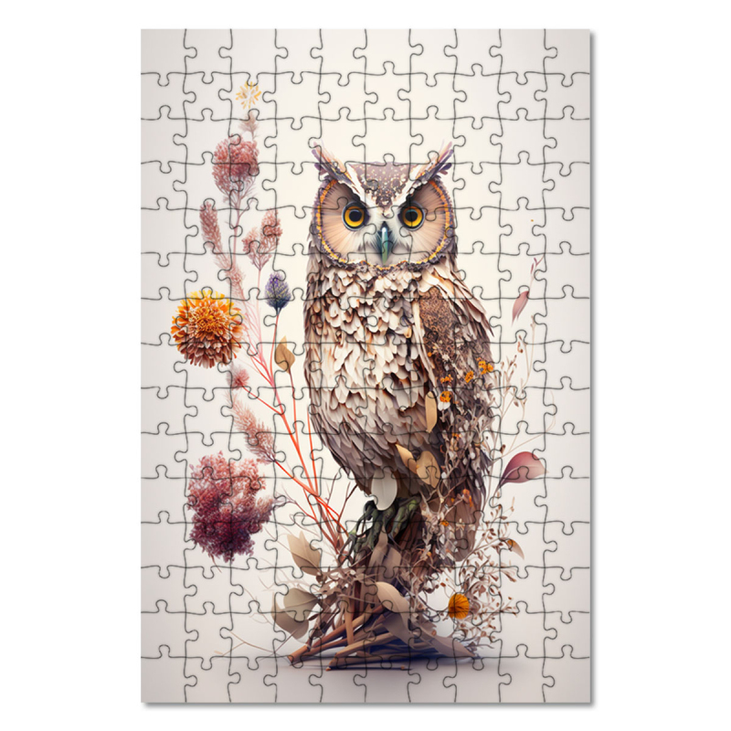Dřevěné puzzle Květinová sova
