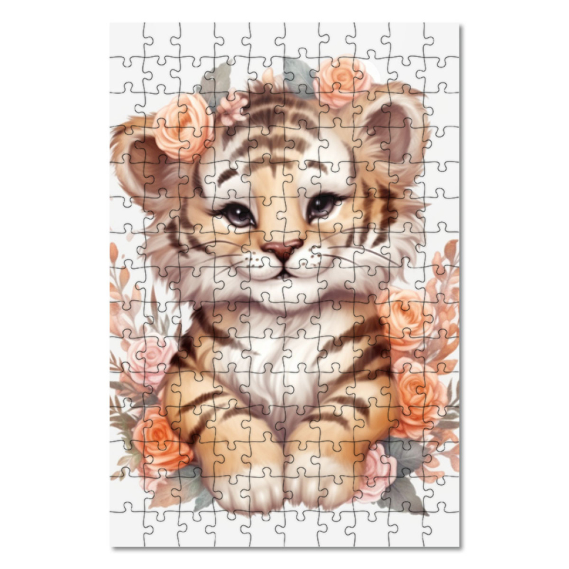 Dřevěné puzzle Mládě tygra v květinách