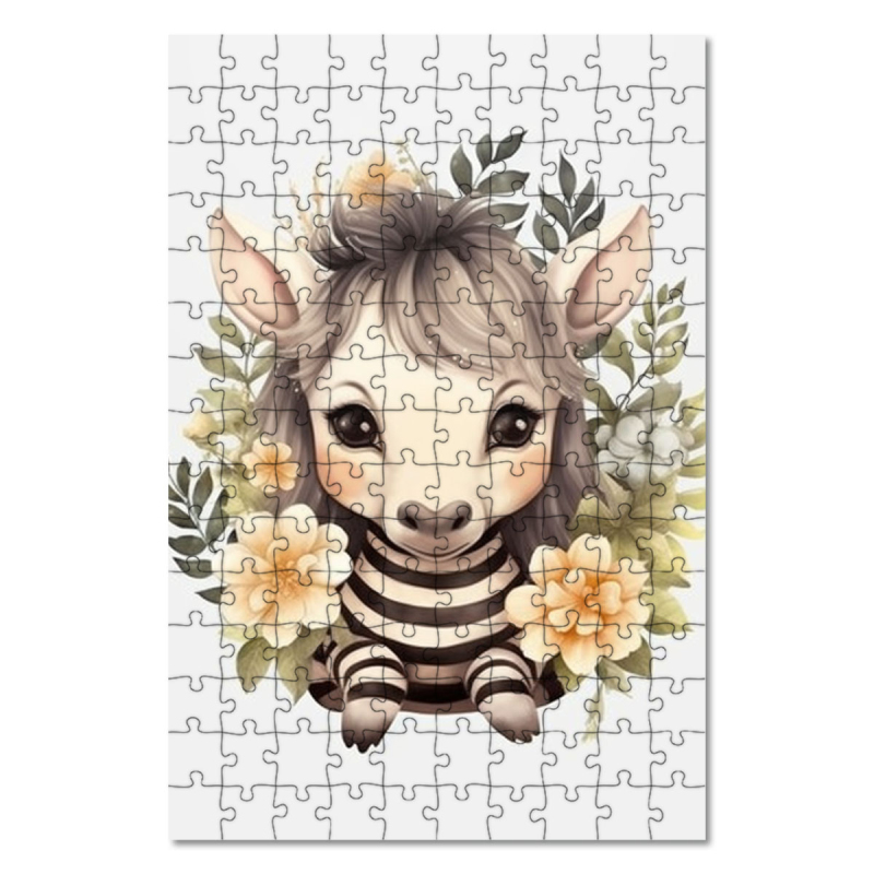 Dřevěné puzzle Mládě zebry v květinách