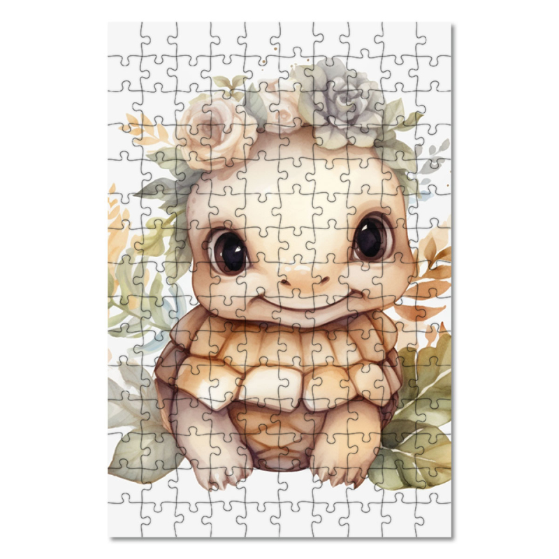 Dřevěné puzzle Mládě želvy v květinách
