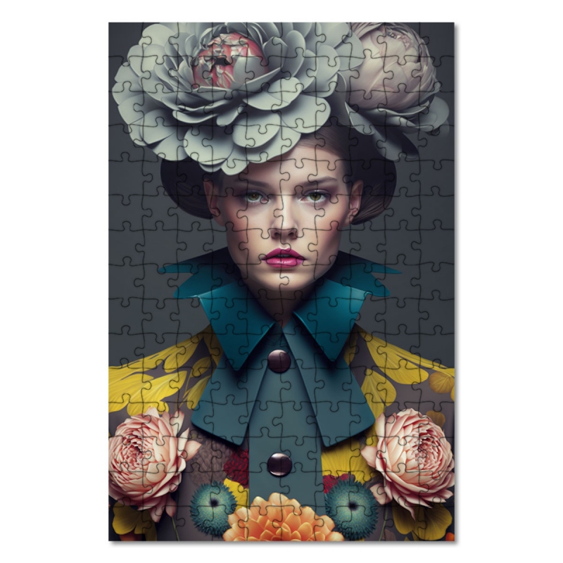 Dřevěné puzzle Móda - květinový klobouk 2