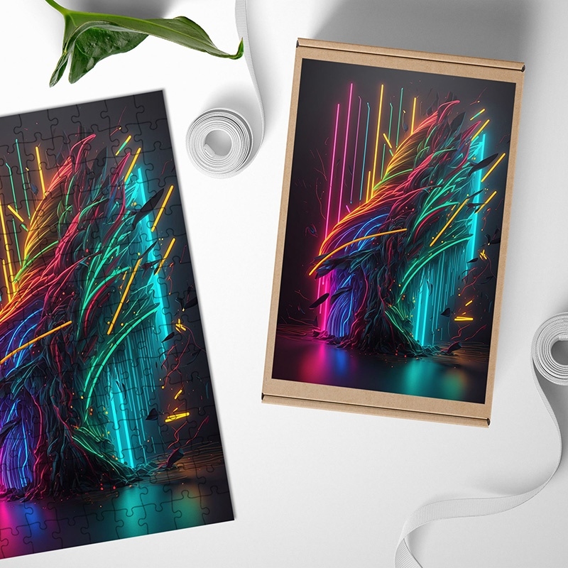 Dřevěné puzzle Neonový strom