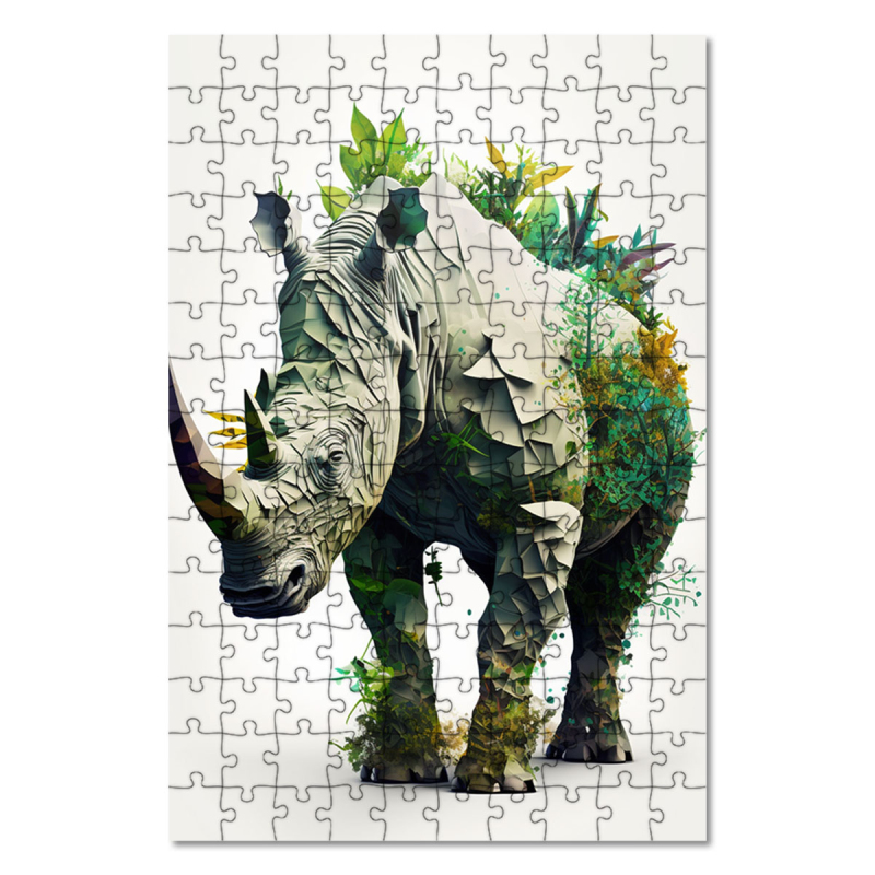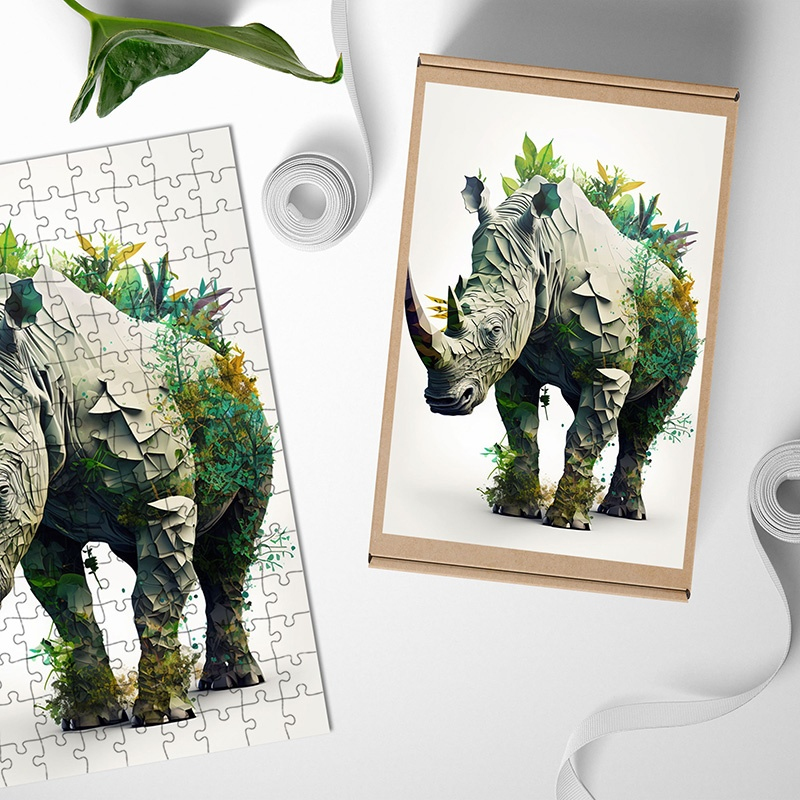 Dřevěné puzzle Přírodní nosorožec