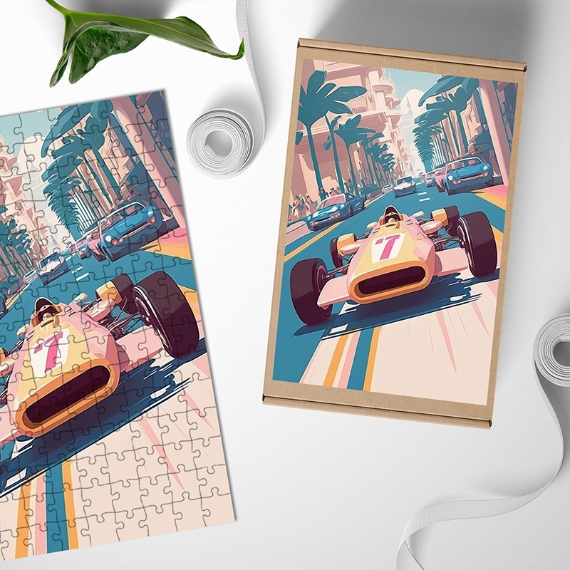 Dřevěné puzzle Retro závodní auto