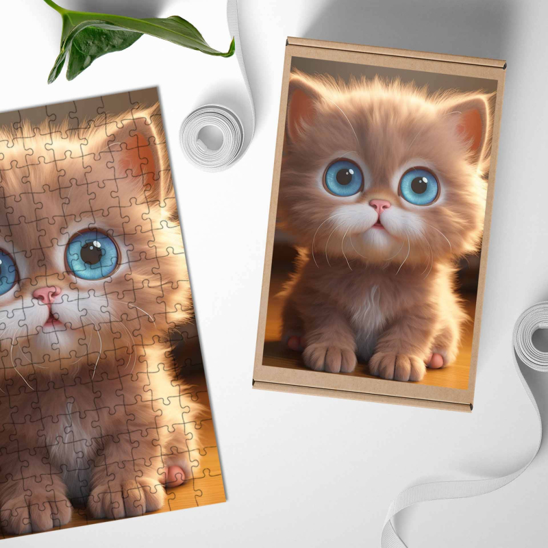 Dřevěné puzzle Roztomilá animovaná kočka 1