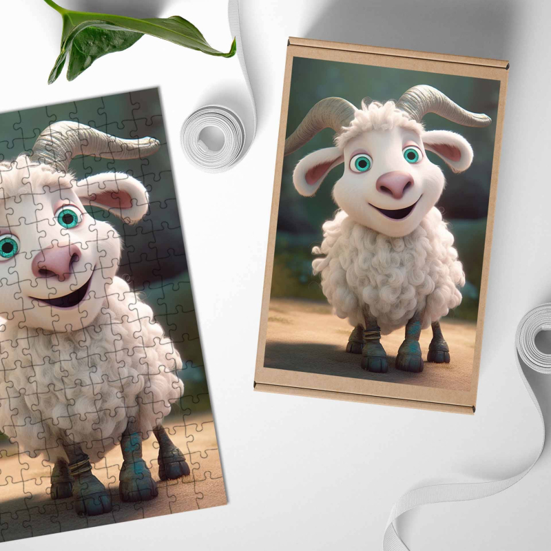 Dřevěné puzzle Roztomilá animovaná koza 1