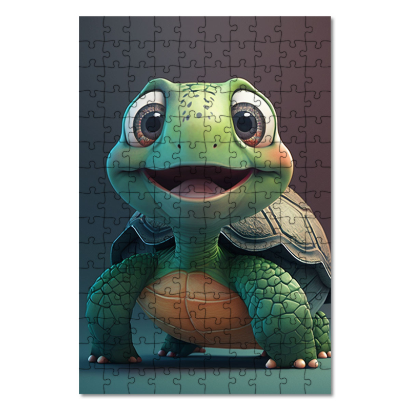 Dřevěné puzzle Roztomilá animovaná želva