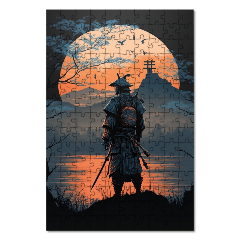 Dřevěné puzzle Samuraj při západu slunce