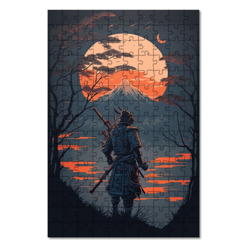 Dřevěné puzzle Samuraj u hory Fuji