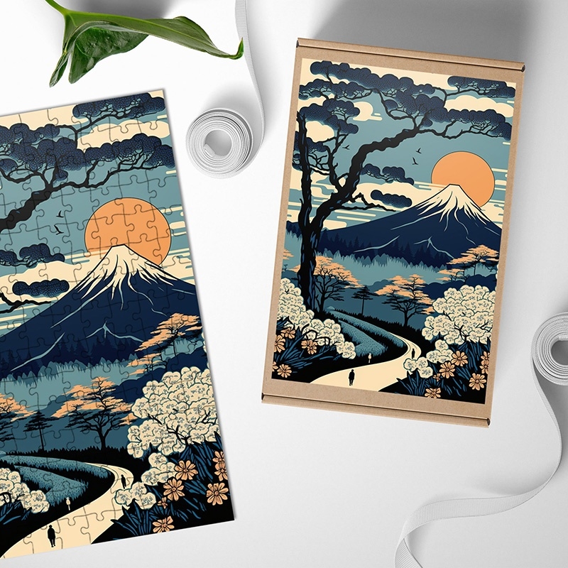 Dřevěné puzzle Slunce nad Fuji 2