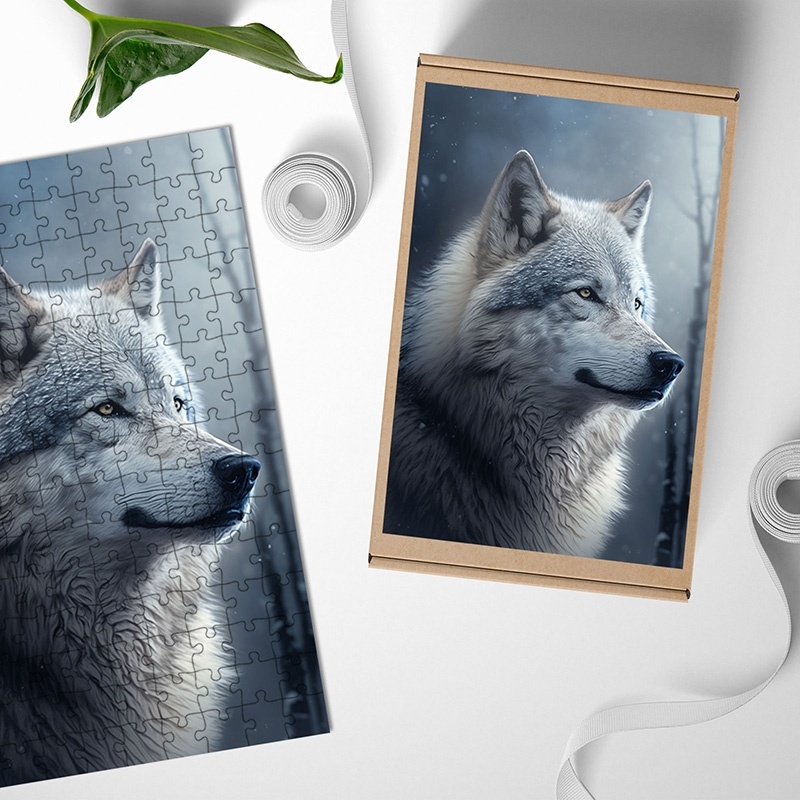 Dřevěné puzzle Vlk v zimě