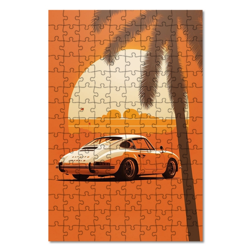 Dřevěné puzzle Západ slunce retro porsche