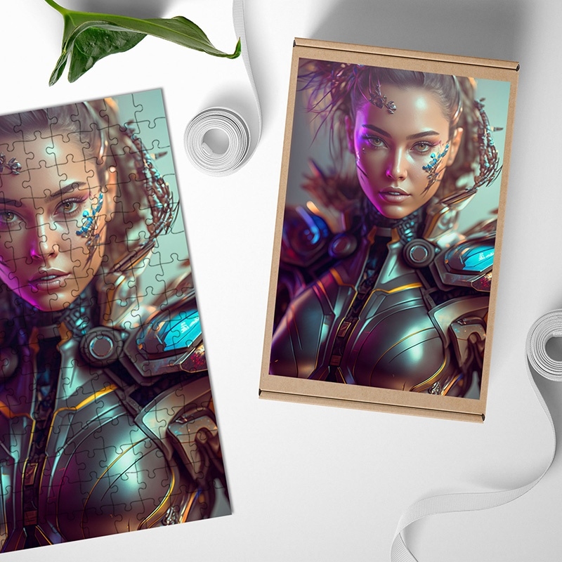 Dřevěné puzzle Žena kyborg 3