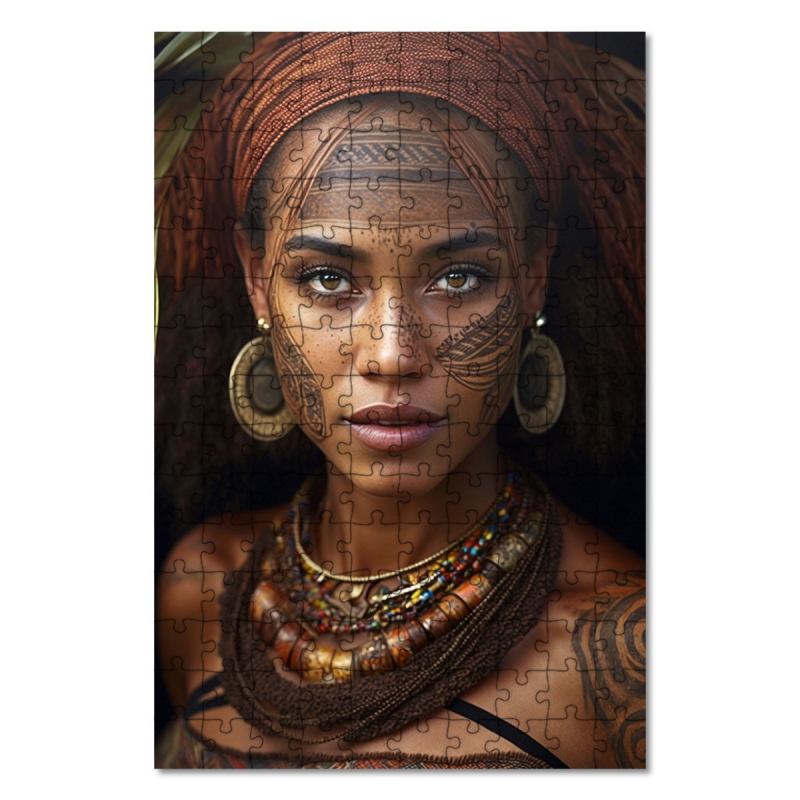 Dřevěné puzzle Žena s kmenovým tetováním