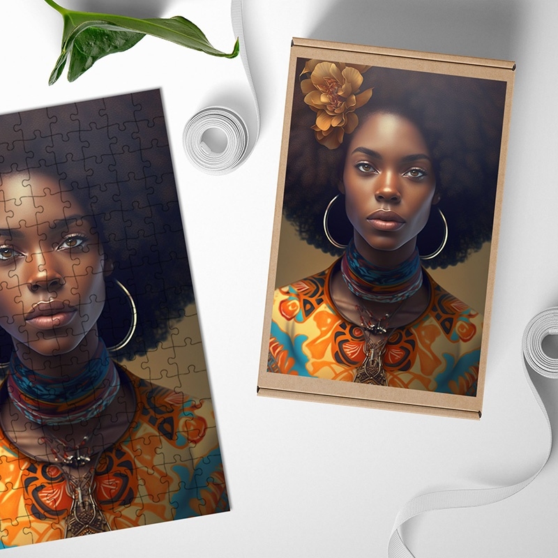 Dřevěné puzzle Žena v pestrobarevných šatech
