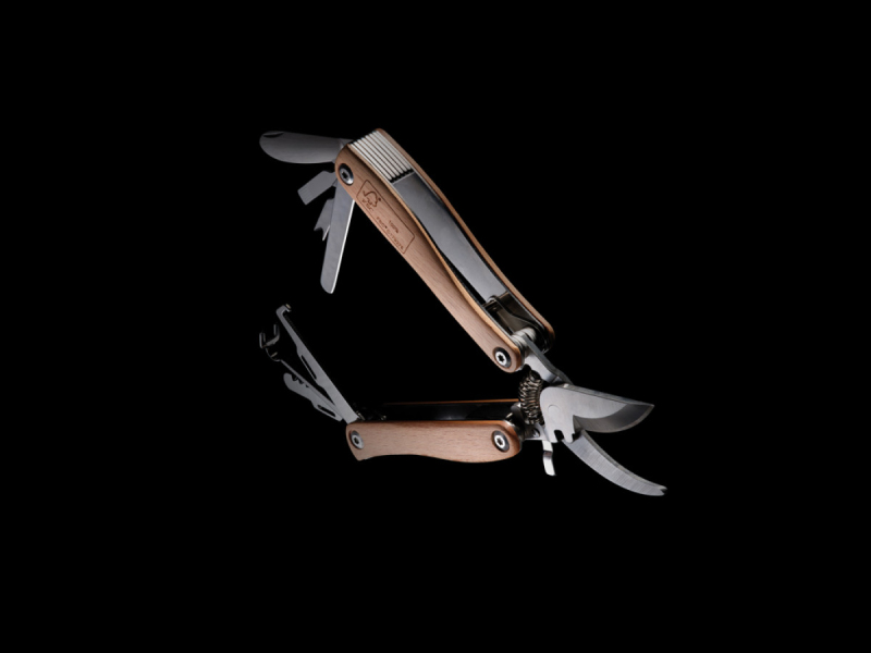 Zahradní multufunkční nářadí vyrobené z mimořádně pevné nerezové oceli (SS 420) s detaily z FSC® dřeva. Rockwell tvrdost: 42-52. Obsahuje 10 funkcí: zahradnické nůžky, odstraňovač kořenů, lopatka, háček na odstraňování plevele, nástroj na odplevelení, plochý šroubovák, pilník, pilka, nůž, zámek. Baleno v FSC® kraftové krabičce.