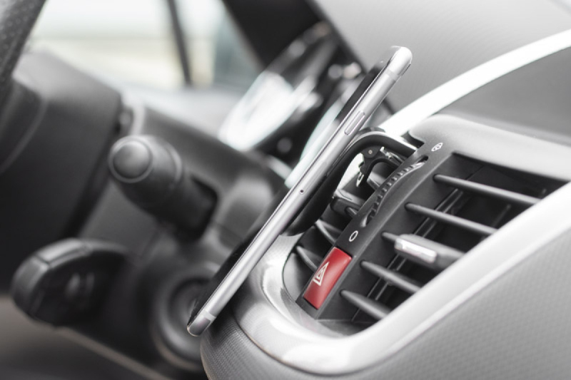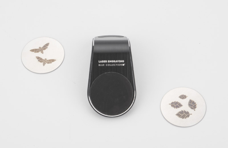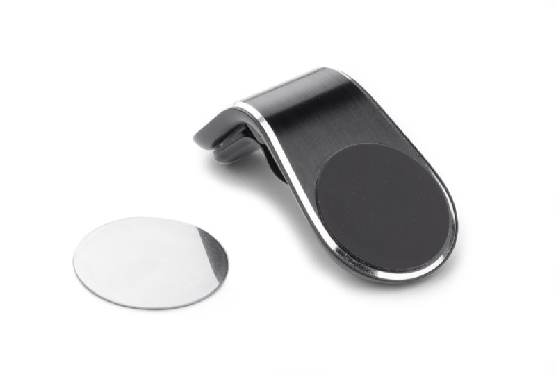 Magnetický držák telefonu pro použití ve ventilační mřížce automobilu. Pohodlná svorka pro připojení telefonu. Včetně dvou stříbrných plaket.