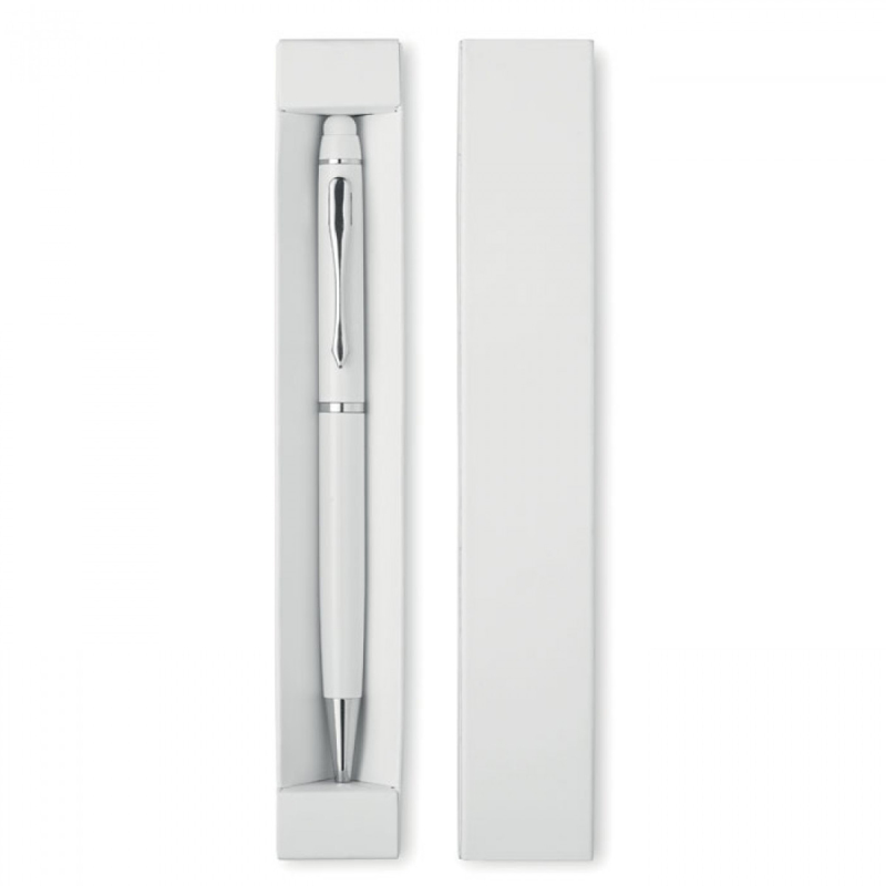 Hliníkové kuličkové pero a měkký touch hrot. Modrý inkoust. Baleno v papírové krabici.
