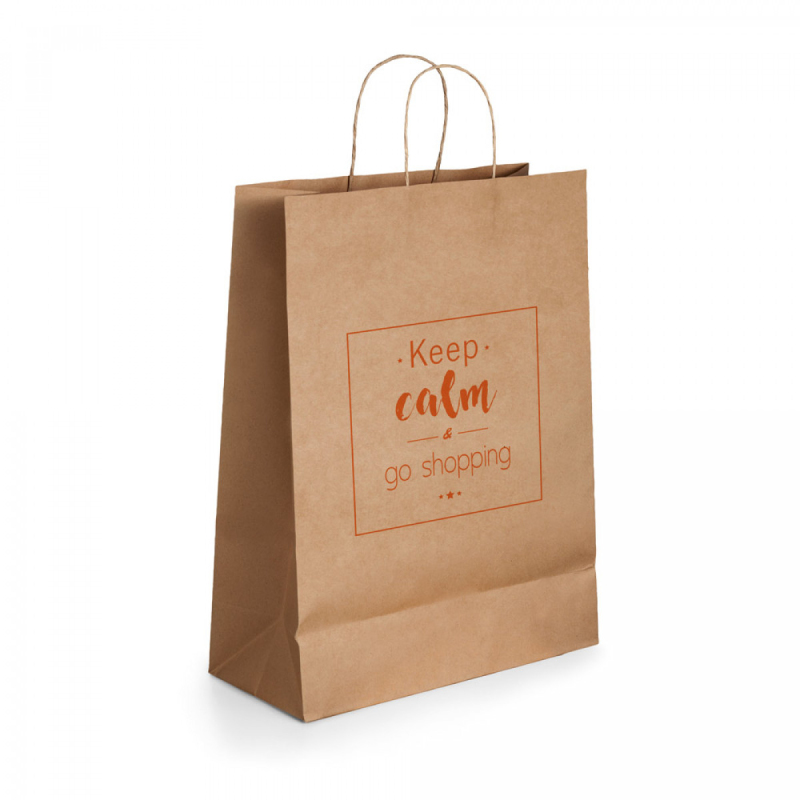 Taška z kraftového papíru (115 g/m²) s kroucenými uchy. 240 x 310 x 90 mm