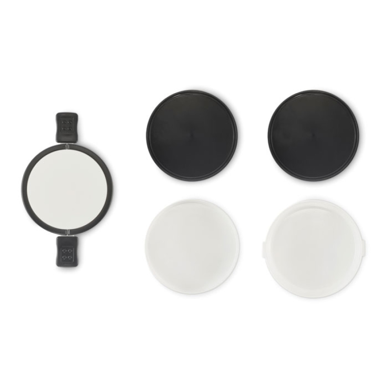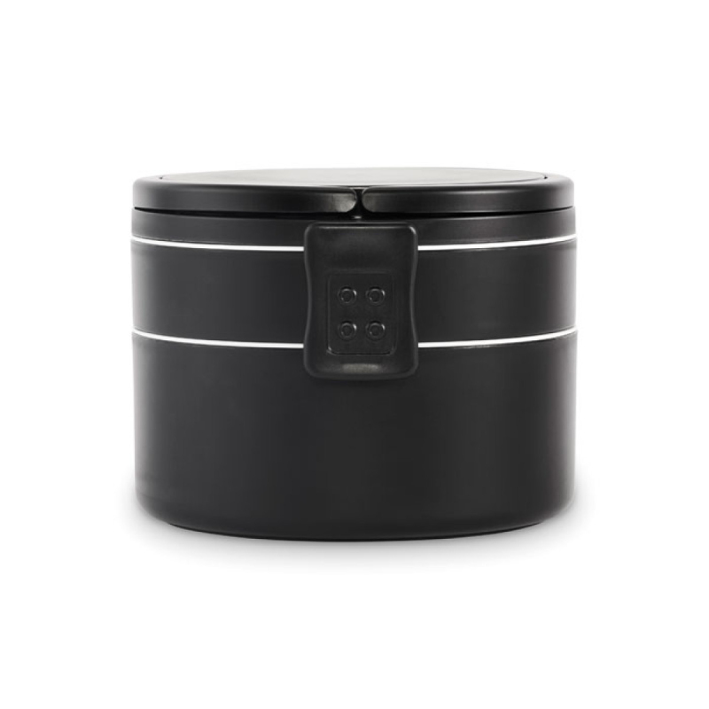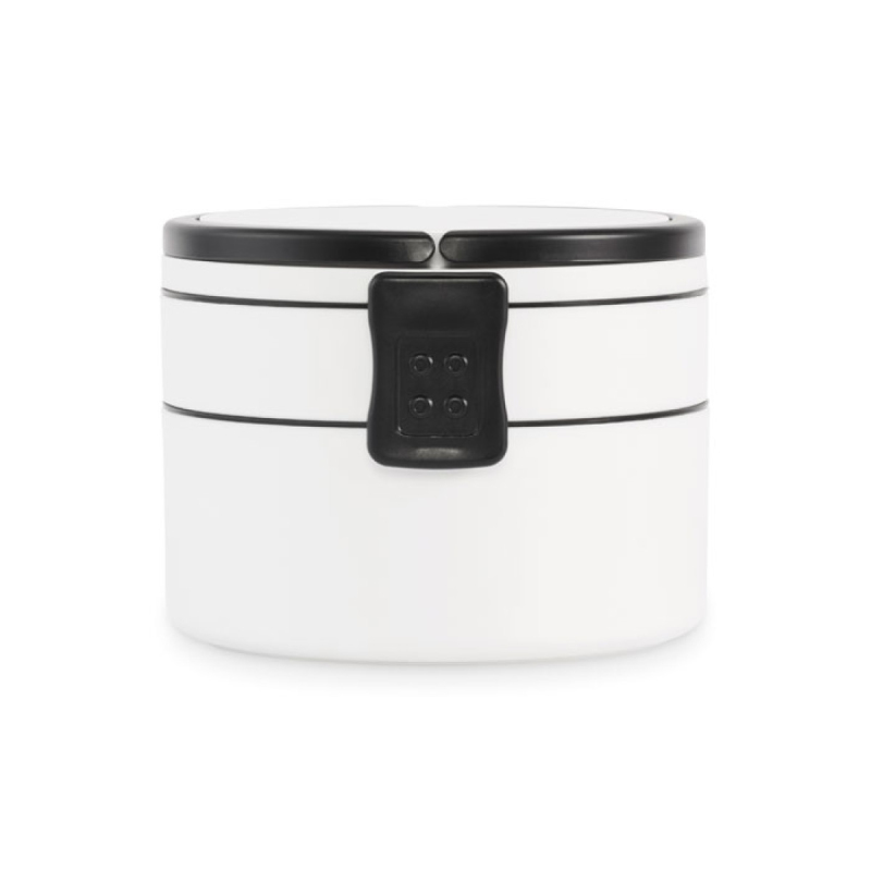 Dvoupatrový kulatý box na oběd nebo svačinu z PP s bočním zavíráním pomocí klipů. Včetně vnitřních vložek. Objem 250 ml (horní) a 700 ml (dolní).