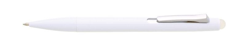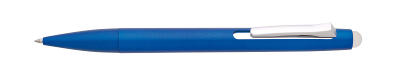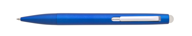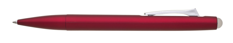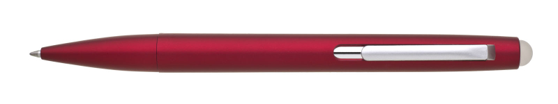 Gumovací plastová propiska v červené metalické barvě a stříbným klipem s koncovkou pro gumování napsaného textu. Náplň modrá, gumovací, s kratší životnosti než běžné kuličkové náplně.