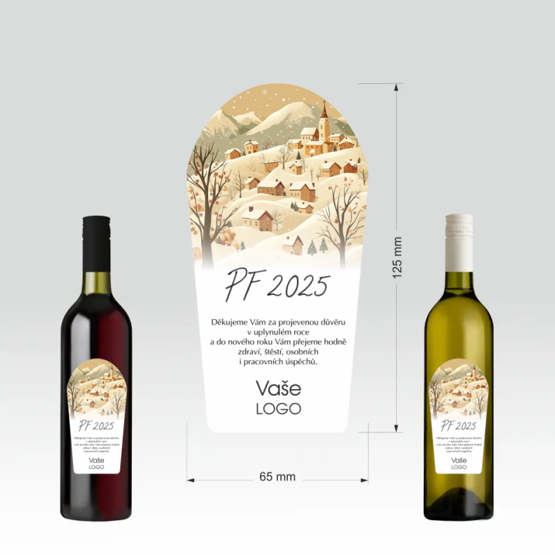 Etiketa na víno s vánoční tématikou je krásným doplňkem k darované láhvi.