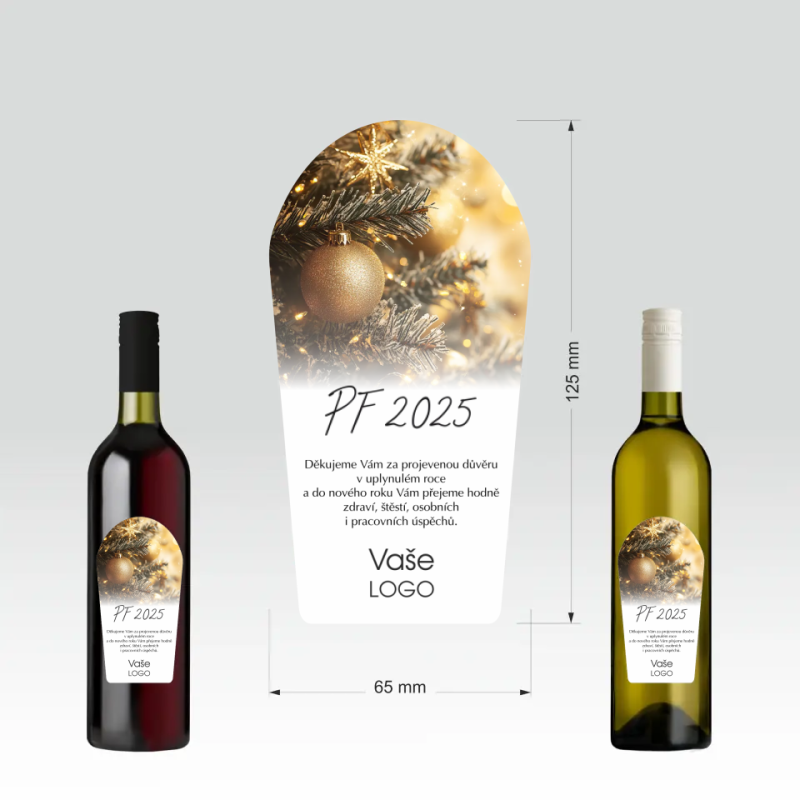 Přední stranu etikety je možné doplnit firemním logem a sladit ji tak s firemní identitou. Etiketa je vytištěna standardním digitálním potiskem. Originální a barevná etiketa láhev oživí a zároveň zaujme nejednoho obdarovaného.