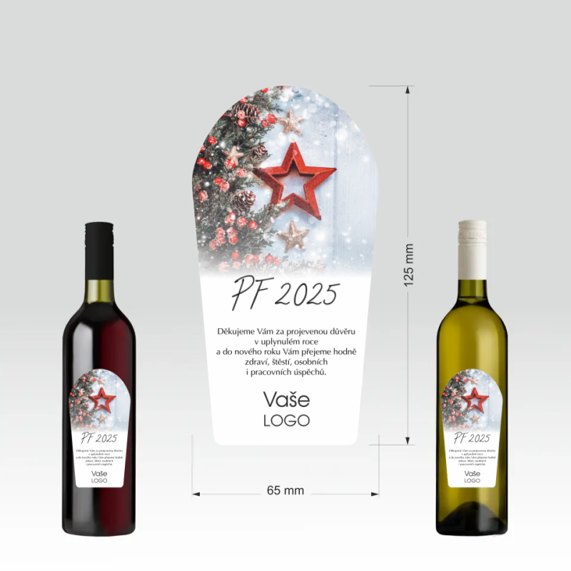 Etiketa na víno s vánoční tématikou je krásným doplňkem k darované láhvi.