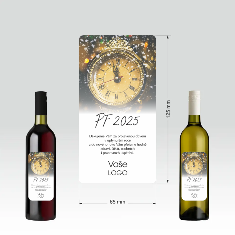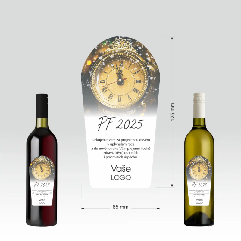 Přední stranu etikety je možné doplnit firemním logem a sladit ji tak s firemní identitou. Etiketa je vytištěna standardním digitálním potiskem. Originální a barevná etiketa láhev oživí a zároveň zaujme nejednoho obdarovaného.
