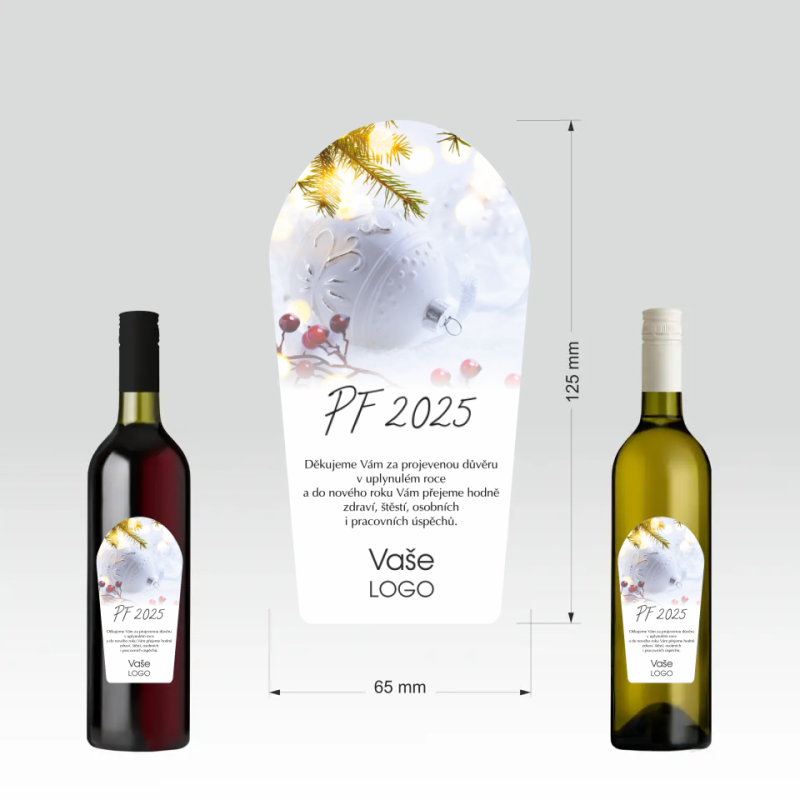 Přední stranu etikety je možné doplnit firemním logem a sladit ji tak s firemní identitou. Etiketa je vytištěna standardním digitálním potiskem. Originální a barevná etiketa láhev oživí a zároveň zaujme nejednoho obdarovaného.