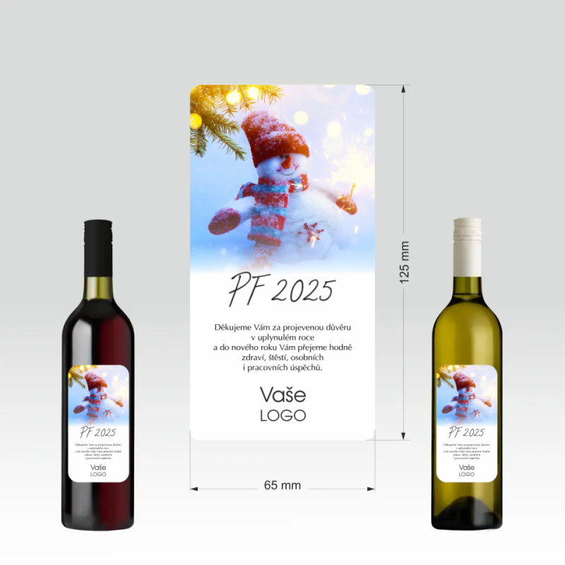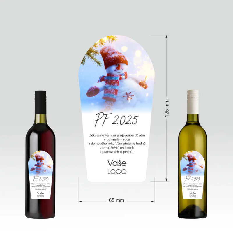 Přední stranu etikety je možné doplnit firemním logem a sladit ji tak s firemní identitou. Etiketa je vytištěna standardním digitálním potiskem. Originální a barevná etiketa láhev oživí a zároveň zaujme nejednoho obdarovaného.