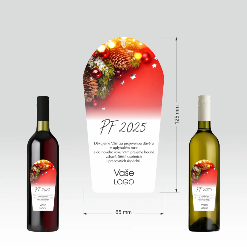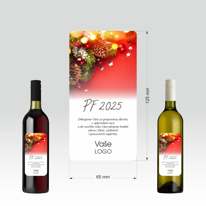 Přední stranu etikety je možné doplnit firemním logem a sladit ji tak s firemní identitou. Etiketa je vytištěna standardním digitálním potiskem. Originální a barevná etiketa láhev oživí a zároveň zaujme nejednoho obdarovaného.