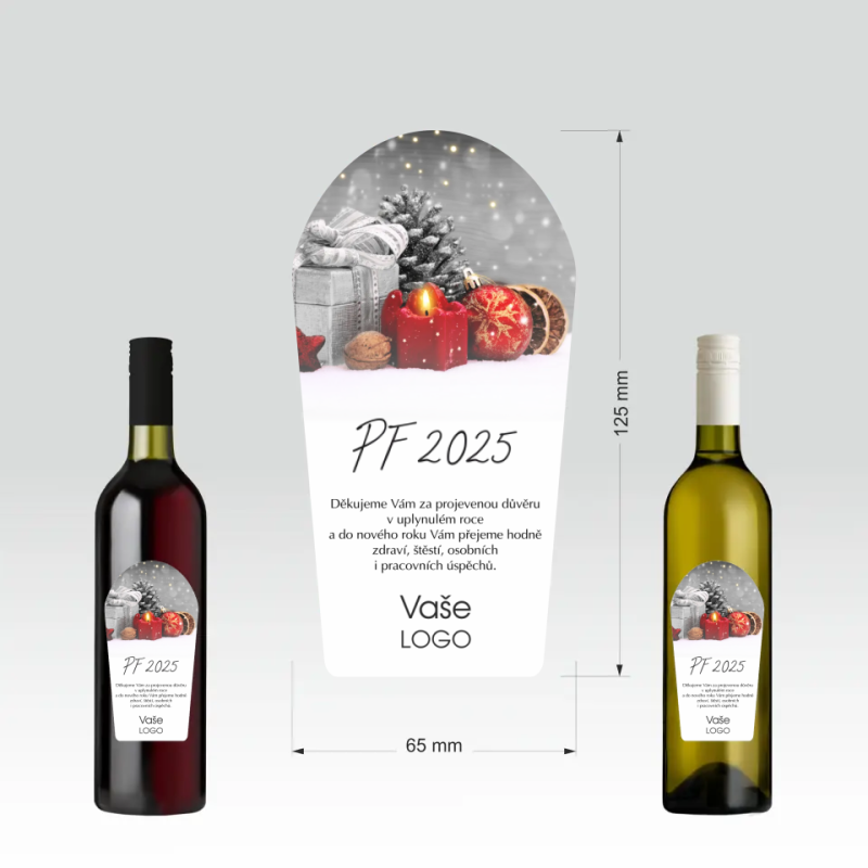 Přední stranu etikety je možné doplnit firemním logem a sladit ji tak s firemní identitou. Etiketa je vytištěna standardním digitálním potiskem. Originální a barevná etiketa láhev oživí a zároveň zaujme nejednoho obdarovaného.