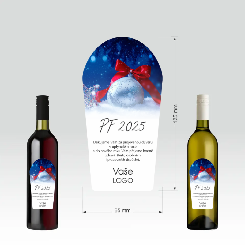 Přední stranu etikety je možné doplnit firemním logem a sladit ji tak s firemní identitou. Etiketa je vytištěna standardním digitálním potiskem. Originální a barevná etiketa láhev oživí a zároveň zaujme nejednoho obdarovaného.