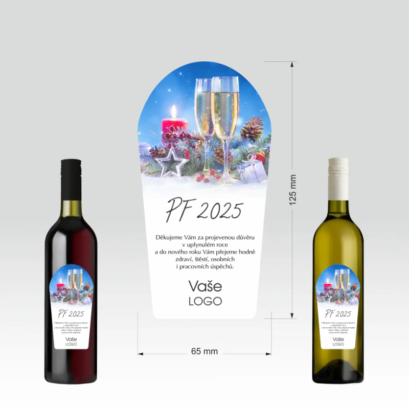 Přední stranu etikety je možné doplnit firemním logem a sladit ji tak s firemní identitou. Etiketa je vytištěna standardním digitálním potiskem. Originální a barevná etiketa láhev oživí a zároveň zaujme nejednoho obdarovaného.