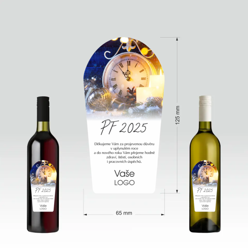 Přední stranu etikety je možné doplnit firemním logem a sladit ji tak s firemní identitou. Etiketa je vytištěna standardním digitálním potiskem. Originální a barevná etiketa láhev oživí a zároveň zaujme nejednoho obdarovaného.