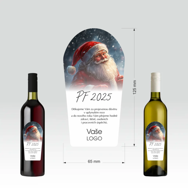 Etiketa na víno s vánoční tématikou je krásným doplňkem k darované láhvi.