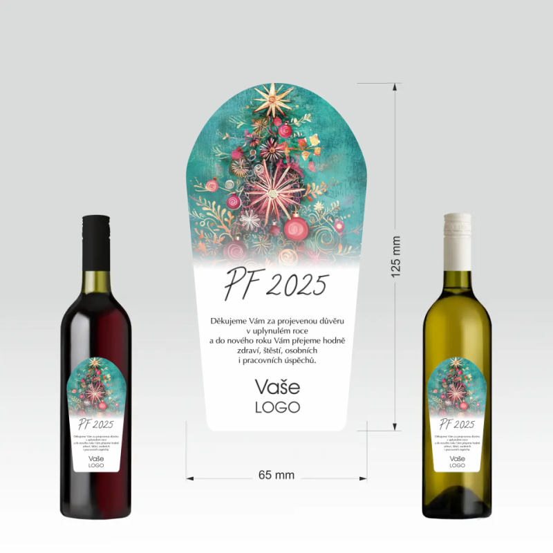 Přední stranu etikety je možné doplnit firemním logem a sladit ji tak s firemní identitou. Etiketa je vytištěna standardním digitálním potiskem. Originální a barevná etiketa láhev oživí a zároveň zaujme nejednoho obdarovaného.