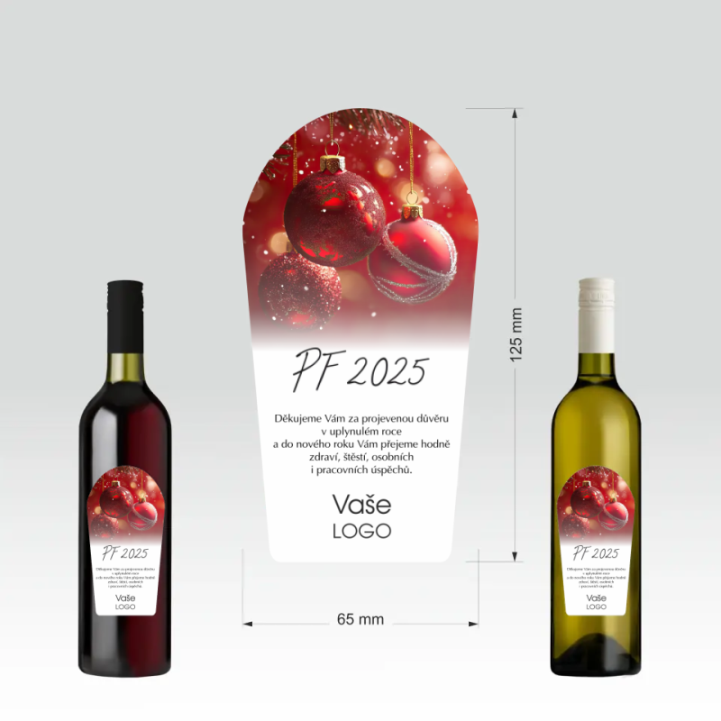 Přední stranu etikety je možné doplnit firemním logem a sladit ji tak s firemní identitou. Etiketa je vytištěna standardním digitálním potiskem. Originální a barevná etiketa láhev oživí a zároveň zaujme nejednoho obdarovaného.