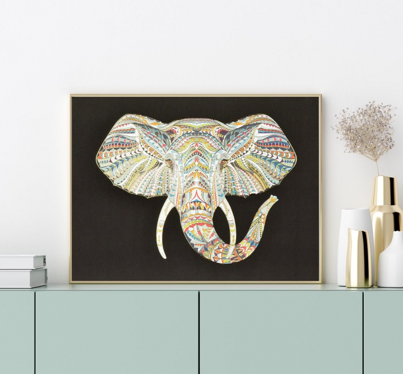 Etnický slon 3D Zlatý Plakát