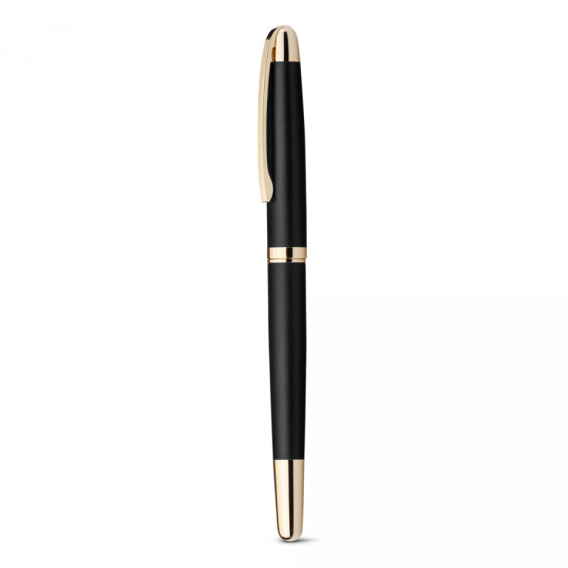 Kovový roller se zlatými detaily a klipem. Dodáváno v pouzdře z řemeslného papíru. ø11 x 140 | Krabička: 180 x 43 x 22 mm