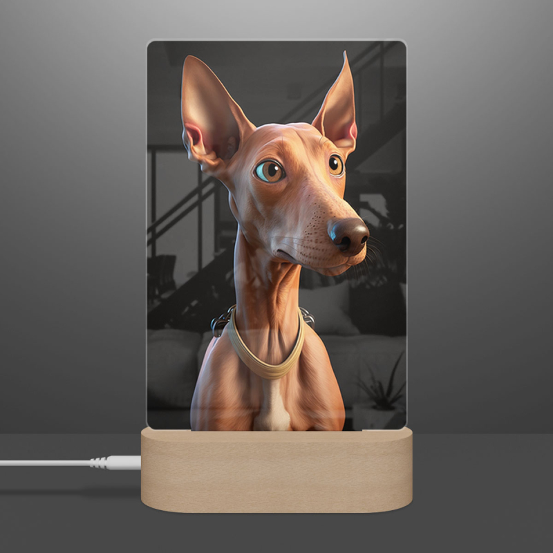 Součástí balení je akrylové sklo dle výběru, dřevěný RGB LED stojánek a napájecí USB kabel.