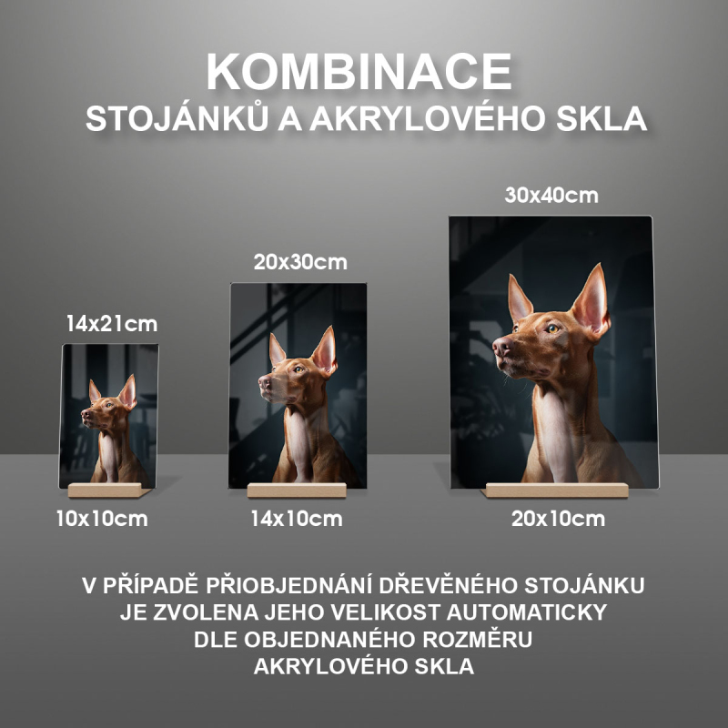 V případě přiobjednání dřevěného stojánku je zvolena jeho velikost automaticky dle objednaného rozměru akrylového skla viz produktové foto.