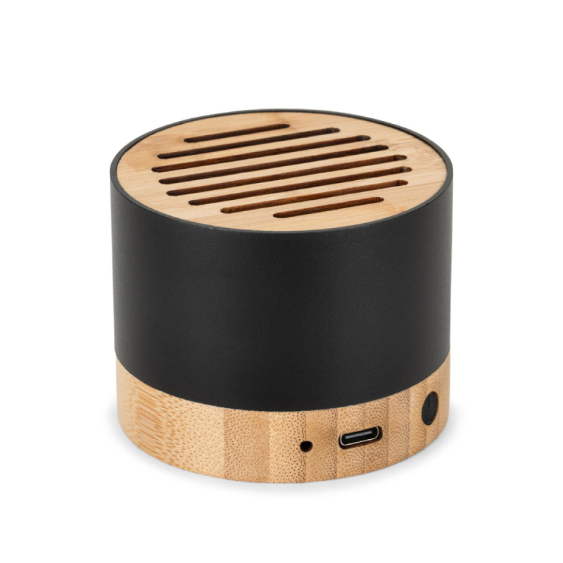 Přenosný reproduktor s minimalistickým a sofistikovaným designem, který je výsledkem dokonalého spojení bambusu a recyklovaného hliníku. Díky vestavěnému mikrofonu a funkci hands-free můžete přijímat hovory a spouštět nebo zastavovat přehrávání přímo na reproduktoru, což zaručuje jednoduché a intuitivní používání jak v práci, tak ve volném čase.Materiál: recyklovaný hliník (100 % rAL), bambusBezdrátový přenos: BT v5. 3Kapacita: 300 mAhPřibližná výdrž baterie: 3 hPřibližná doba nabíjení: 2 hVstup: USB-C (1 W)Frekvenční rozsah: 80 Hz – 16 KHzPoměr signálu k šumu: > 80 dBCitlivost: 80 ±3 dBImpedance: 4 ΩPrůměr reproduktoru: Ø 52 mmZvukový výkon: 3 WCitlivost: -38±3 dBV/PaObsah balení: kabel USB-A / USB-CDodávka: dárková krabička z kraftového papíru ø70 x 52 mm | Box: 90 x 72 x 62 mm