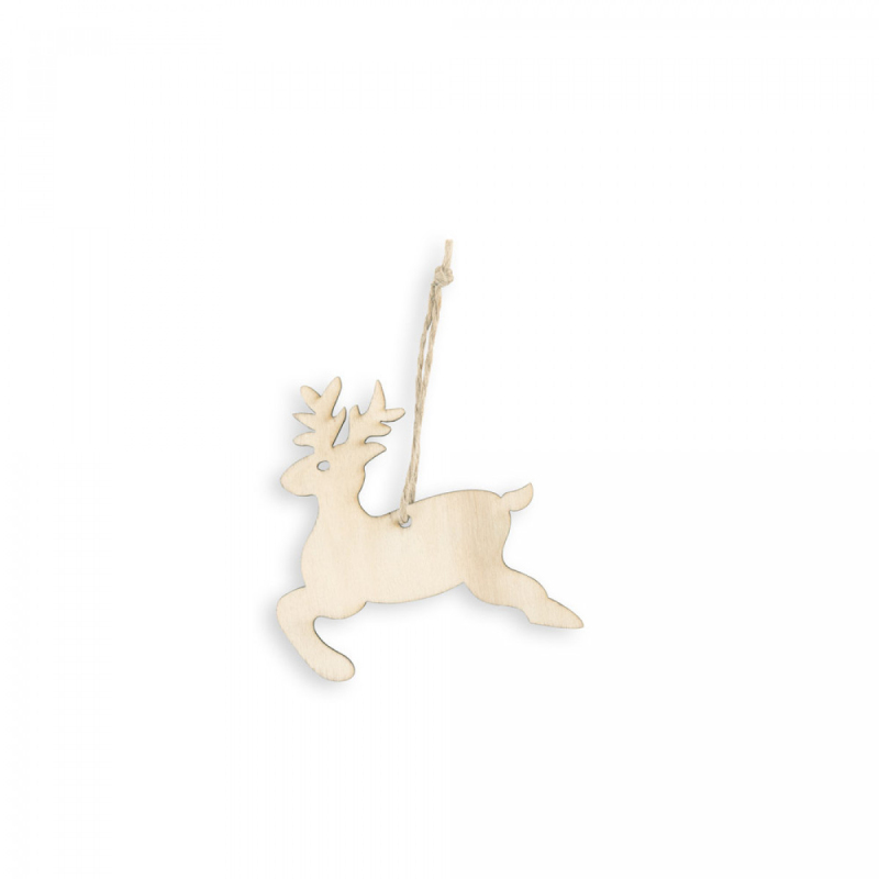 Sada 3 dřevěných vánočních ozdob s různými vzory. Sob: 85 x 80 x 2 mm | Sněhová vločka: ø78 x 2 mm | Vánoční strom: 80 x 79 x 2 mm
