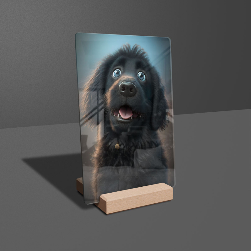 Dárková deska s digitální grafikou psa z akrylového skla.